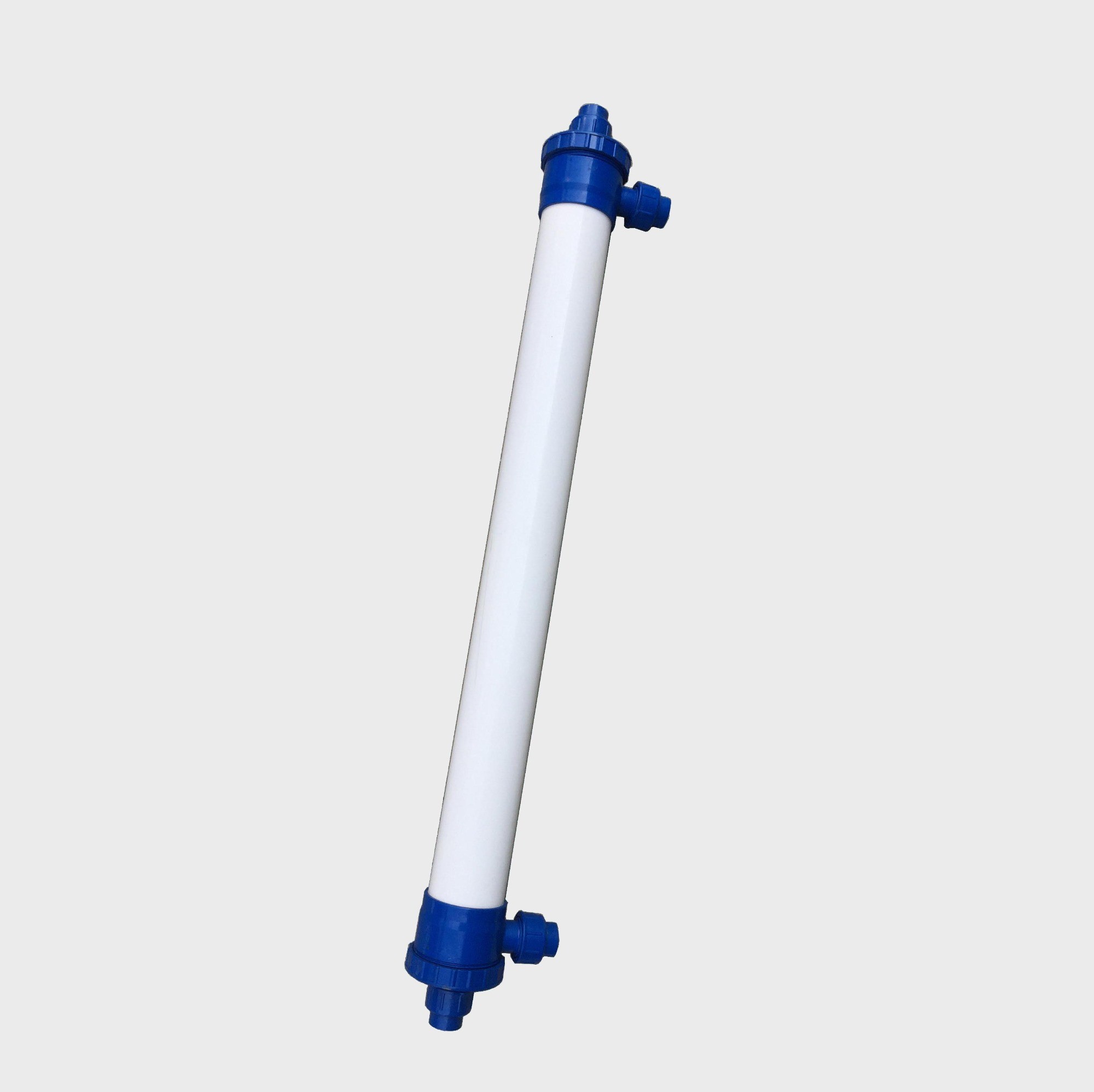 本產品為外壓式超濾膜,根據膜組件外壁的箭頭方向, 箭頭指向的端口是超濾透過液出液口,下部是電泳漆原液進液口,側面上面的口為電泳漆回流口,側面下面的口可以堵住不用;在電泳漆使用過程中可以使用水沖洗,超濾透過液沖洗,沖洗時從膜的回流口進入,原液進入口排出即可。當沖洗效果不是很好時,可以用有機酸和溶劑浸泡,循環沖洗清除膜中的油漆,從面恢復膜的通量。