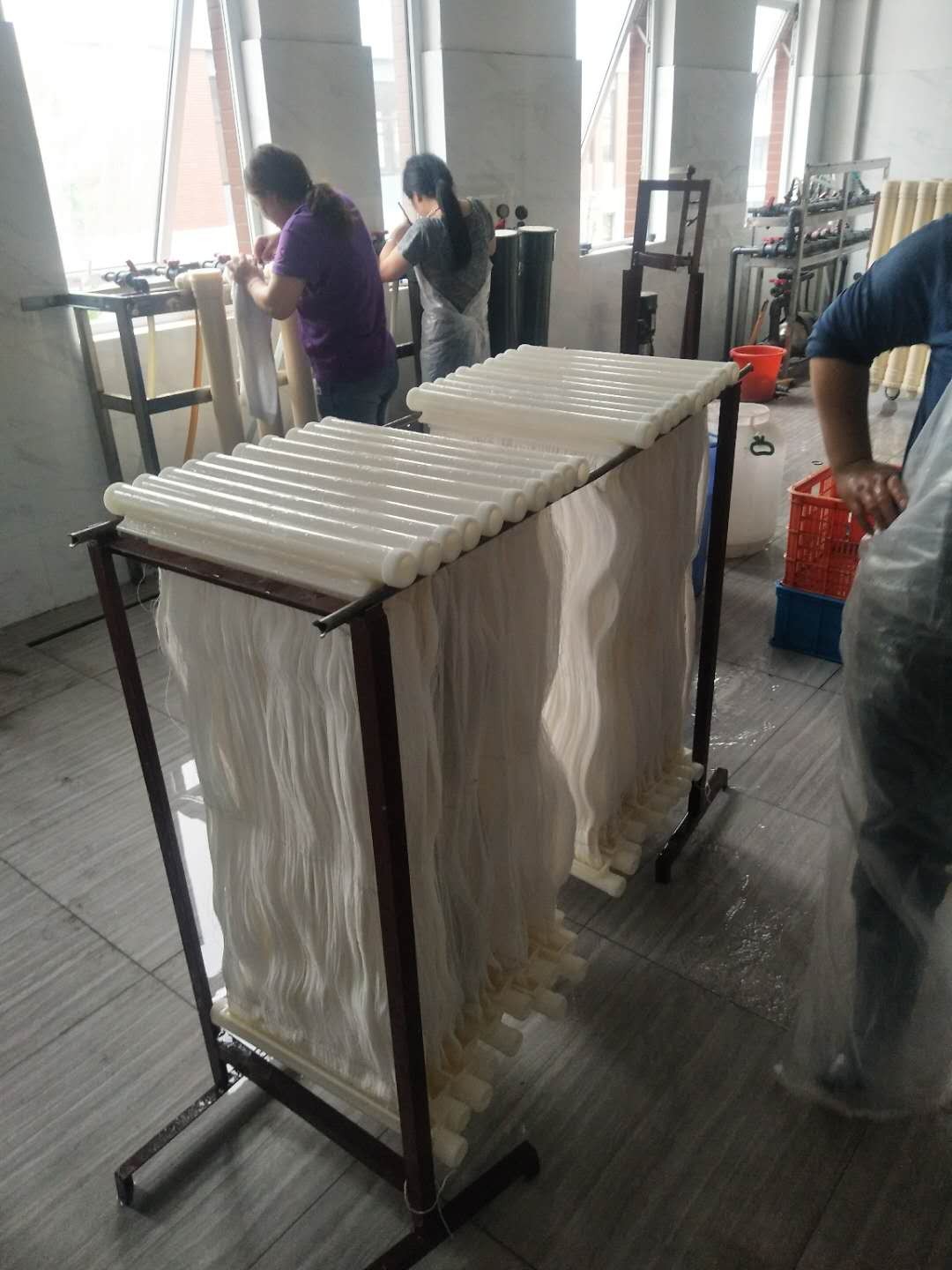 1、 強度高:增強復(fù)合PVDF中空纖維膜由于采用了獨特的支撐層制膜技術(shù),使得其抗拉伸強度和抗壓強度遠遠高于普通的中空纖維膜,單根膜絲拉力大于50KG,被形象地稱為“拉不斷的膜”。